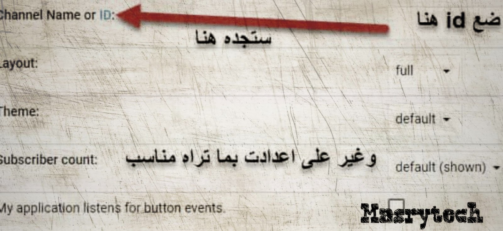 بعد الذهاب سيظهر لك صندوق يطلب منك في أول خيار معرف قناتك وباقي الخيارات عمل عليها بما تراه مناسب لك وفي النهاية سيظهر لك كود قم بنسخة وتوجه إلي التخطيط وبعدها HTML/JavaScript