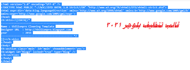 كود قالب التنظيف وهو كود يتم نسخه ولصقه في في أكواد الهوتميل بمظهر مدونتك ليتم تنظيفه من بقايا القوالب السابقة وحتى يعمل القالب الجديد بكفاءة عالية.
